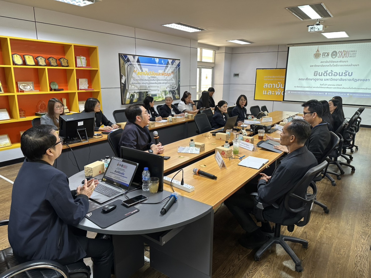 เมื่อวันที่ 27 มกราคม 2569 ณ สถาบันวิจัยและพัฒนา มหาวิทยาลัยเทคโนโลยีราชมงคลล้านนา (ดอยสะเก็ด) คณะผู้บริหารและบุคลากรจากสถาบันวิจัยและพัฒนา มหาวิทยาลัยราชภัฏสงขลา นำโดย อ.พุฒิธร ตุกเตียน ผู้อำนวยการสถาบันวิจัยและพัฒนา พร้อมด้วย ผศ.อภิชาติ พันชูกลาง รองผู้อำนวยการสถาบันวิจัยและพัฒนา ฝ่ายยุทธศาสตร์, นส.เกศสุพร มากสาขา เจ้าหน้าที่บริหารงานทั่วไป ชำนาญการ (หัวหน้าสำนักงาน), นางปฐมา ทองคำ และ นางจิรวรรณ โปเกลี้ยง เจ้าหน้าที่บริหารงานทั่วไป ได้เข้าศึกษาดูงานและแลกเปลี่ยนเรียนรู้แนวทางการดำเนินงานด้านการบริหารจัดการงานวิจัย